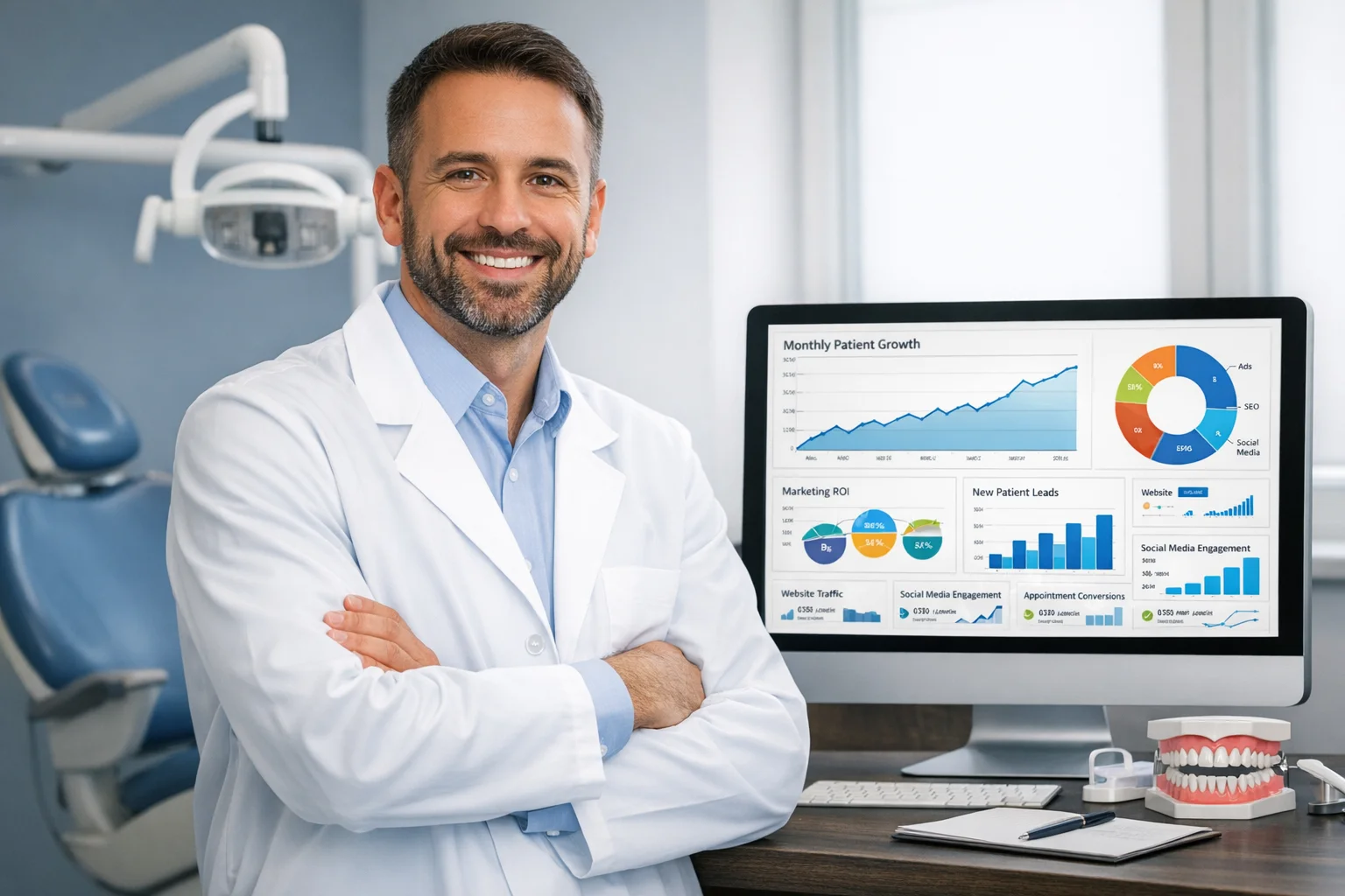 - Premium cosmetic or implant-focused site with professional photography, video, and conversion funnels costs $15,000 to $30,000 or more. For periodontists, pairing this with dedicated periodontist marketing strategies helps fill schedules with high-value cases.